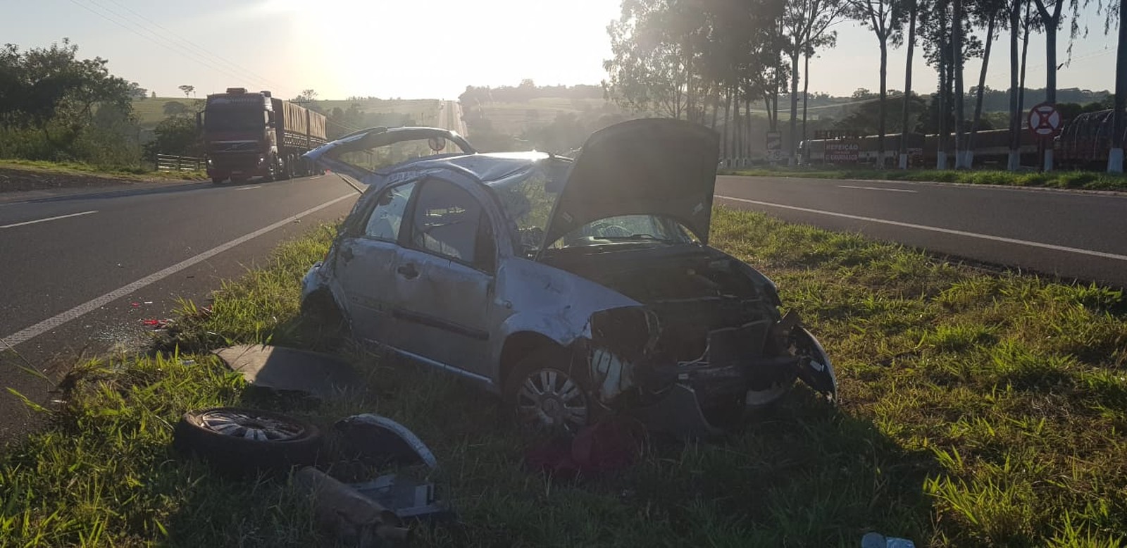 O carro capotou sobre o canteiro central da rodovia. A pista não precisou ser interditada, mas recebeu sinalização do Policiamento Rodoviário com apoio da do Departamento de Estrada de Rodagem (DER).