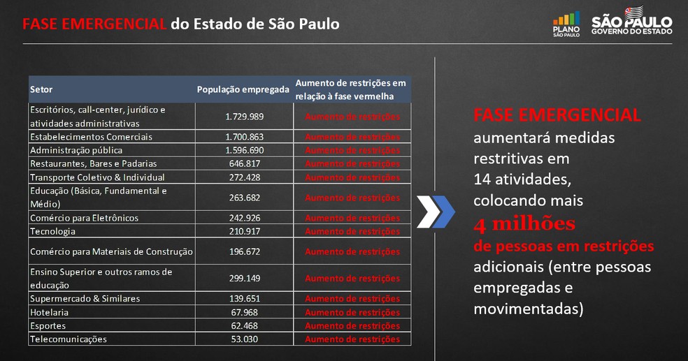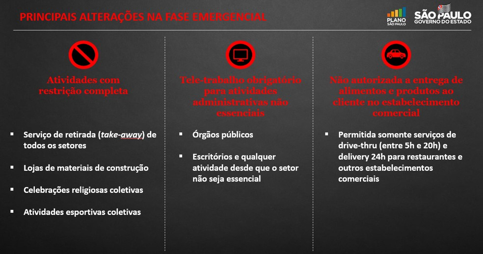 O governo de São Paulo anunciou nesta quinta-feira (11) a fase emergencial, que prevê regras mais rígidas de funcionamento da fase vermelha da quarentena.