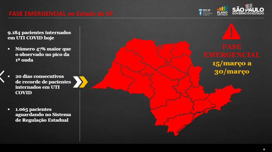 “Eu quero lembrar que nós não estamos fazendo lockdown, nós estamos fazendo uma fase emergencial. Lockdown é a última das últimas medidas, aquela em que você não pode sair de casa em nenhuma circunstância”, defendeu o governador.