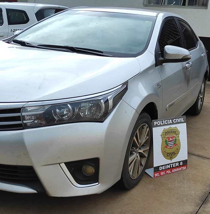 O veículo, um Toyota Corolla, com placas de Parapuã, pertencente à uma mulher que foi assaltada na noite da última sexta-feira, após estacionar na Avenida Brasil e se dirigir até o atendimento eletrônico da agência da Caixa Federal.