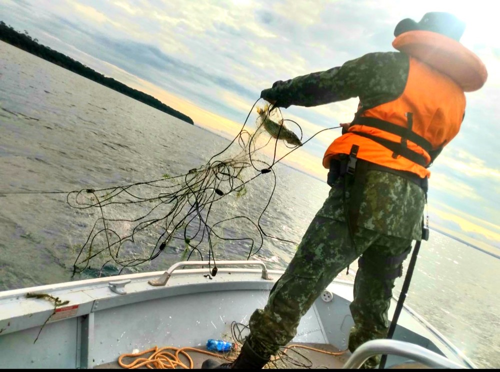 A Polícia Ambiental identificou os infratores, sendo um homem de 54 anos, que é pescador profissional, e um homem, de 49 anos, pescador amador.
