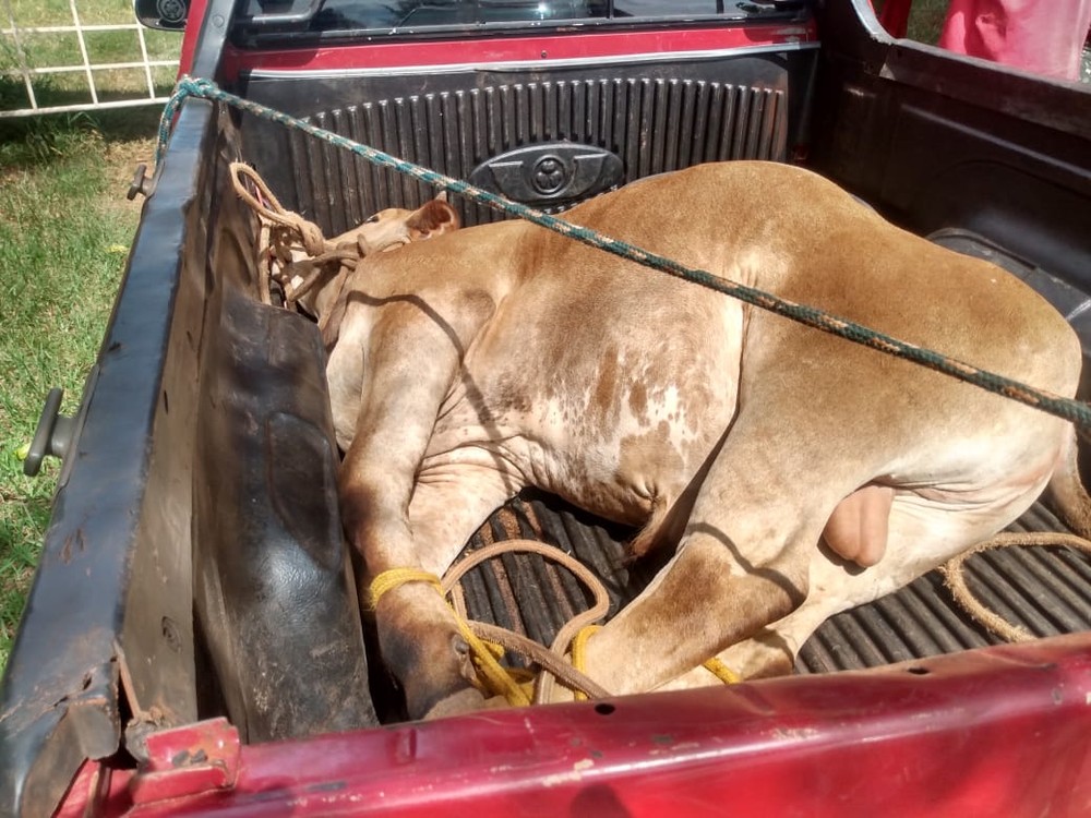 O veículo que transportava o bovino também tinha irregularidades, que resultaram em autos de infração de trânsito e na apreensão da picape.