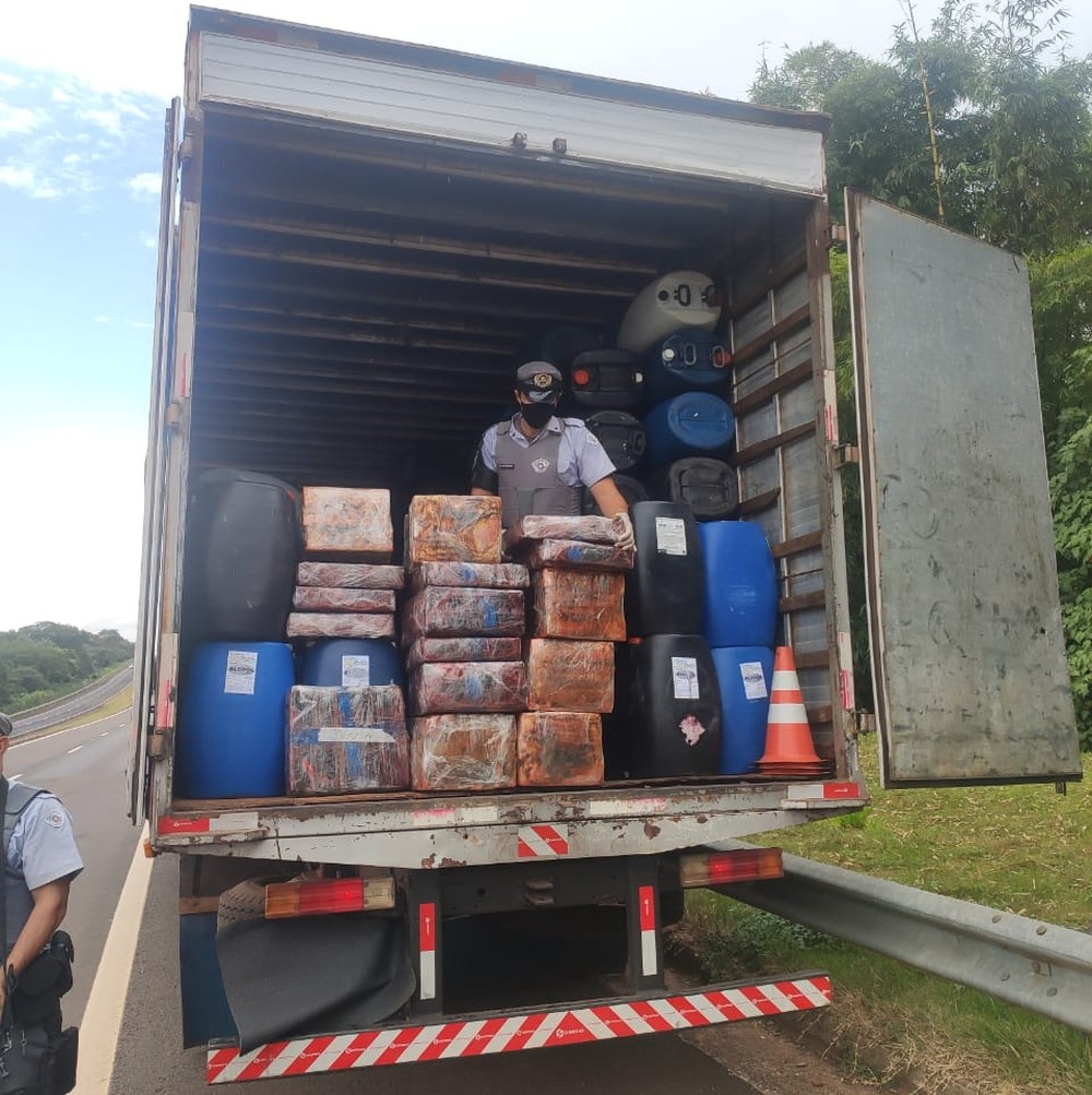 A Polícia Militar Rodoviária apreendeu em Rancharia, nesta sexta-feira (16), uma carga de mais de 4 toneladas de maconha que era transportada escondida em meio a galões plásticos em um caminhão-baú.