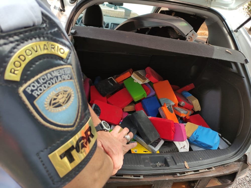 Na vistoria do veículo, os policiais localizaram 75 tabletes de cocaína em um fundo falso entre a longarina e o para-choque traseiro. A droga era transportada de Dourados para Belo Horizonte (MG), segundo a polícia.