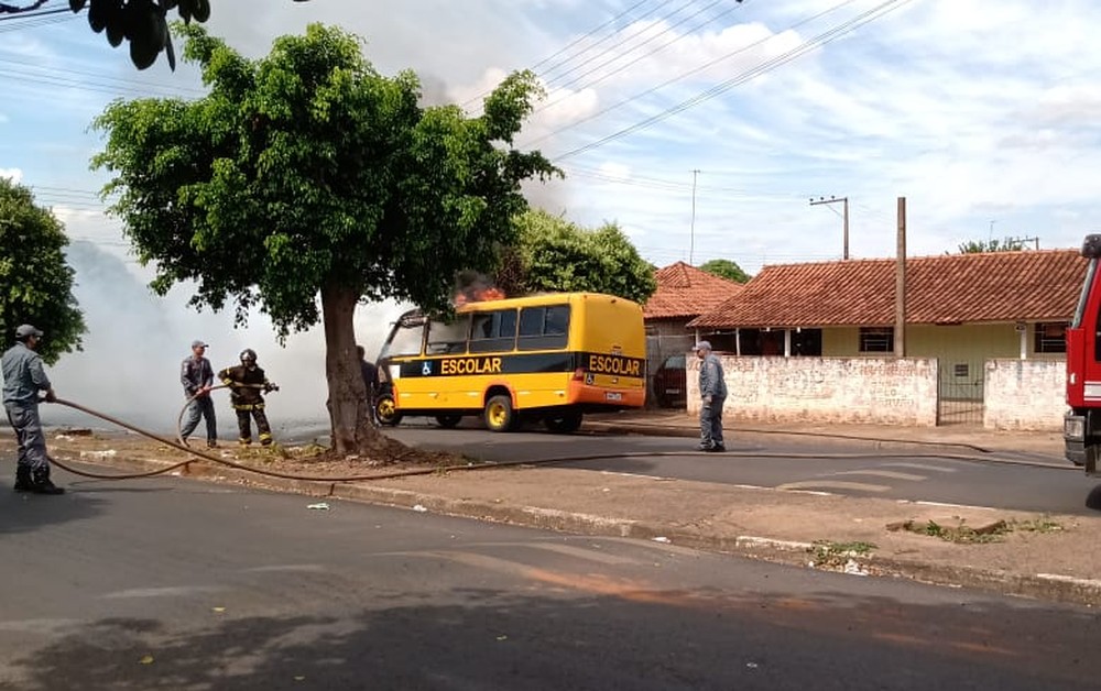 Um incêndio em um micro-ônibus escolar mobilizou o Corpo de Bombeiros na tarde desta segunda-feira (26), na Vila Alegrete, em Martinópolis.
