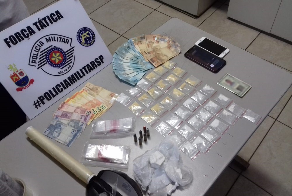 Dois homens, de 22 anos e 25 anos, foram presos por tráfico de drogas e posse irregular de munições durante uma ação da Polícia Militar no bairro Cecap, em Presidente Prudente. O flagrante foi na noite desta quinta-feira (6) e resultou na apreensão de cocaína e quase R$ 2 mil de origem suspeita.