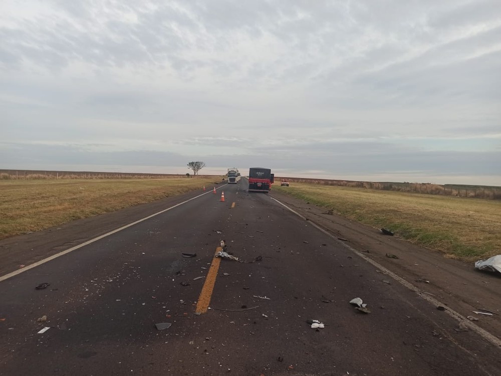 Uma idosa de 61 anos morreu após um acidente entre um carro e um caminhão na tarde deste domingo (23) no Km 175 da BR-153 em Guaiçara (SP).