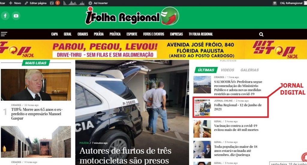 O Grupo Folha Regional – (Jornal TV e Site), passa a disponibilizar a sua edição impressa de forma virtual em seu portal de notícias, o ifolharegional.com.br