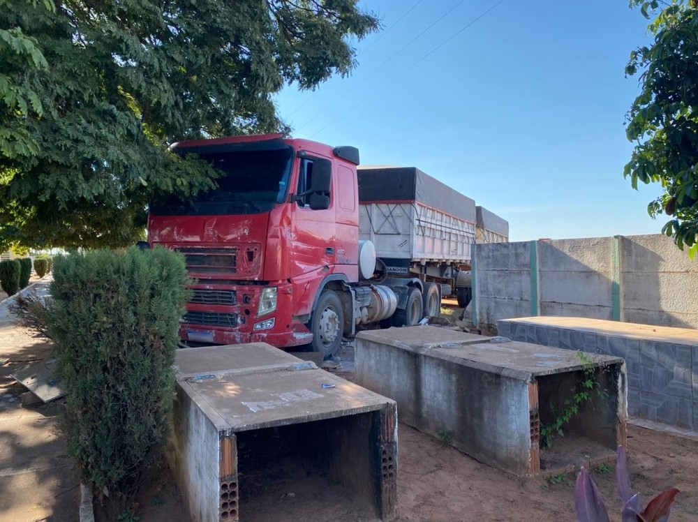 Um caminhoneiro perdeu o controle da direção e invadiu o cemitério municipal de Queiroz (SP), na tarde desta quarta-feira (23).
