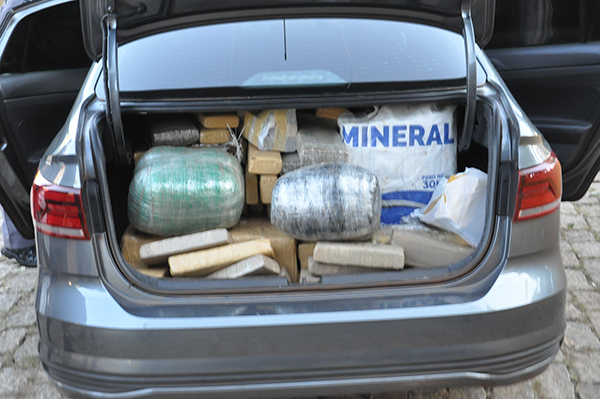 VIDEO – Carro furtado é recuperado pela PM e quase 300 kg de maconha são apreendidos