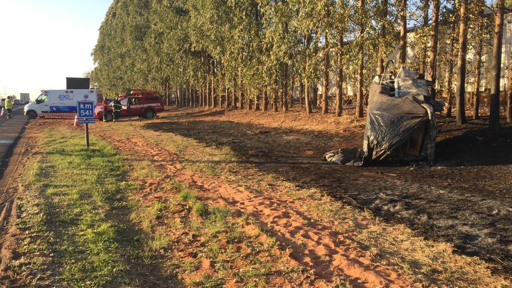 “A dinâmica do acidente foi que o motorista, por algum motivo, acabou batendo na traseira do caminhão. Foi uma colisão leve, mas ele perdeu o controle, saiu da pista, bateu numa árvore na lateral e acabou capotando o veículo, que pegou fogo”, explicou o capitão Erlon Augusto Pavesi, do Corpo de Bombeiros.