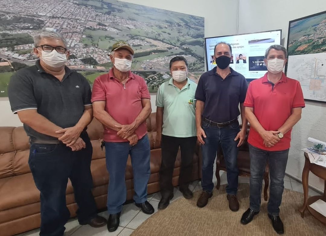 O prefeito Osmar Pinatto juntamente com o diretor do Agronegócio Josemar de Souza e o agrônomo Takeshi Nishida, receberam as visitas do Diretor Regional CATI Engenheiro Paulo Sérgio Martins, e o Presidente da COOPAJ Osvaldo Dias, acontecida nesta terça-feira (28/09/21).