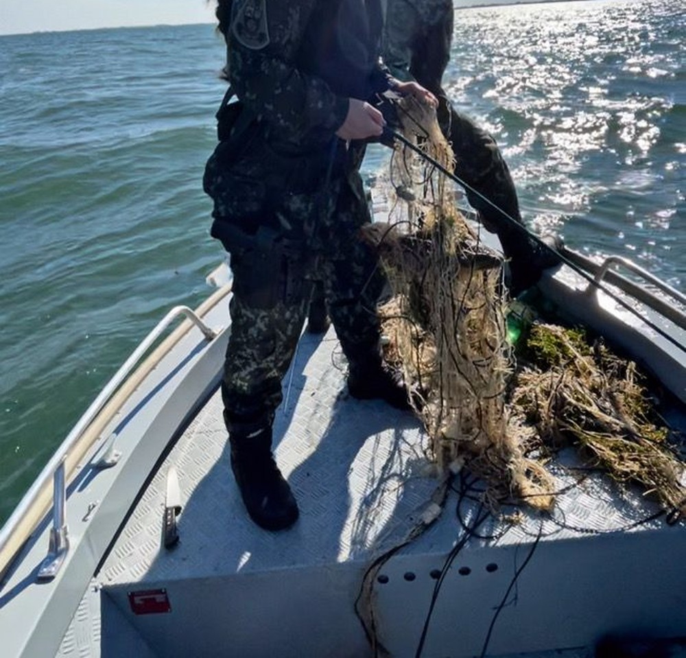 De acordo com a polícia, as redes, com malhas de 16 milímetros, não possuíam plaquetas de identificação.