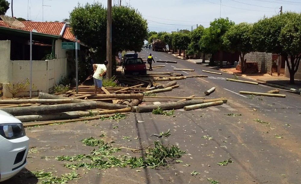 As toras também ficaram espalhadas por diversos pontos da via e calçadas.