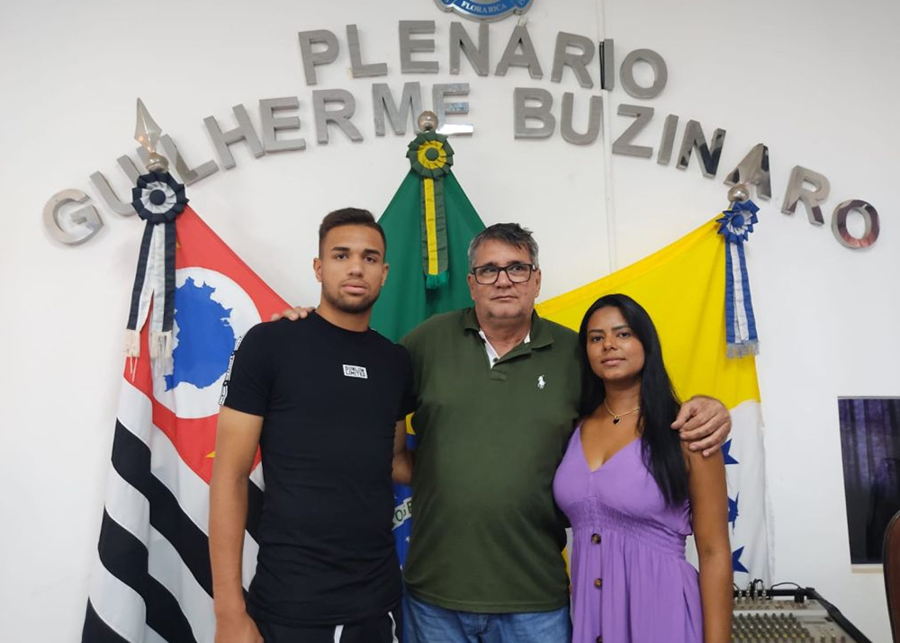 Na oportunidade, Vinícius Kauê aproveitou para comparecer nas dependências da Câmara Municipal de Flora Rica para reencontrar sua prima Rosicler Ribeiro Camargo que é presidente do legislativo onde também marcou presença no local, o prefeito Gilberto Sanches (Gica), que agradeceu a visita do jogador e aproveitou a oportunidade para registrar uma foto do momento.