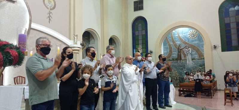 A missa emocionante celebrada pelo pároco frei Airton recebeu um grande público. Na procissão de entrada, houve a participação de secretários municipais, prefeito, primeira-dama e os filhos Apolo e Breno; vice-prefeito; representantes do Corpo de Bombeiros.