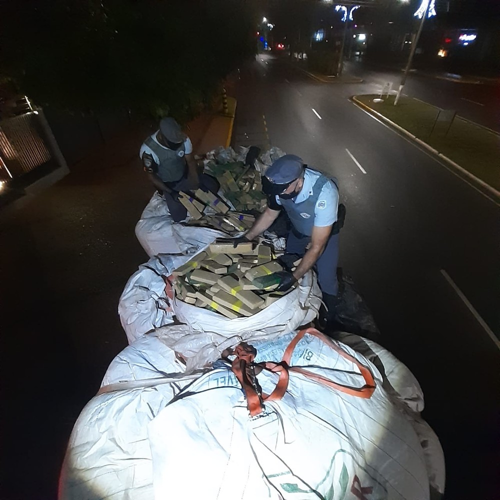 O caminhão estava carregado com sucata plástica. O motorista tinha saído de Cuiabá (MT). Em vistoria minuciosa, os policiais localizaram grande quantidade de maconha entre a carga.