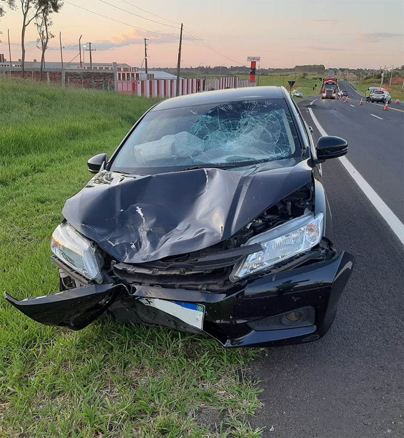 A frente do veículo Honda City ficou totalmente destruída, mas o motorista não precisou ser socorrido.