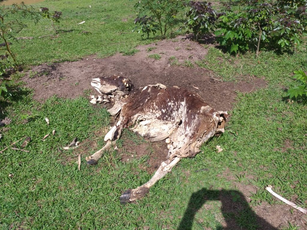 Os bovinos por estarem em estado avançado de decomposição permaneceram na propriedade.