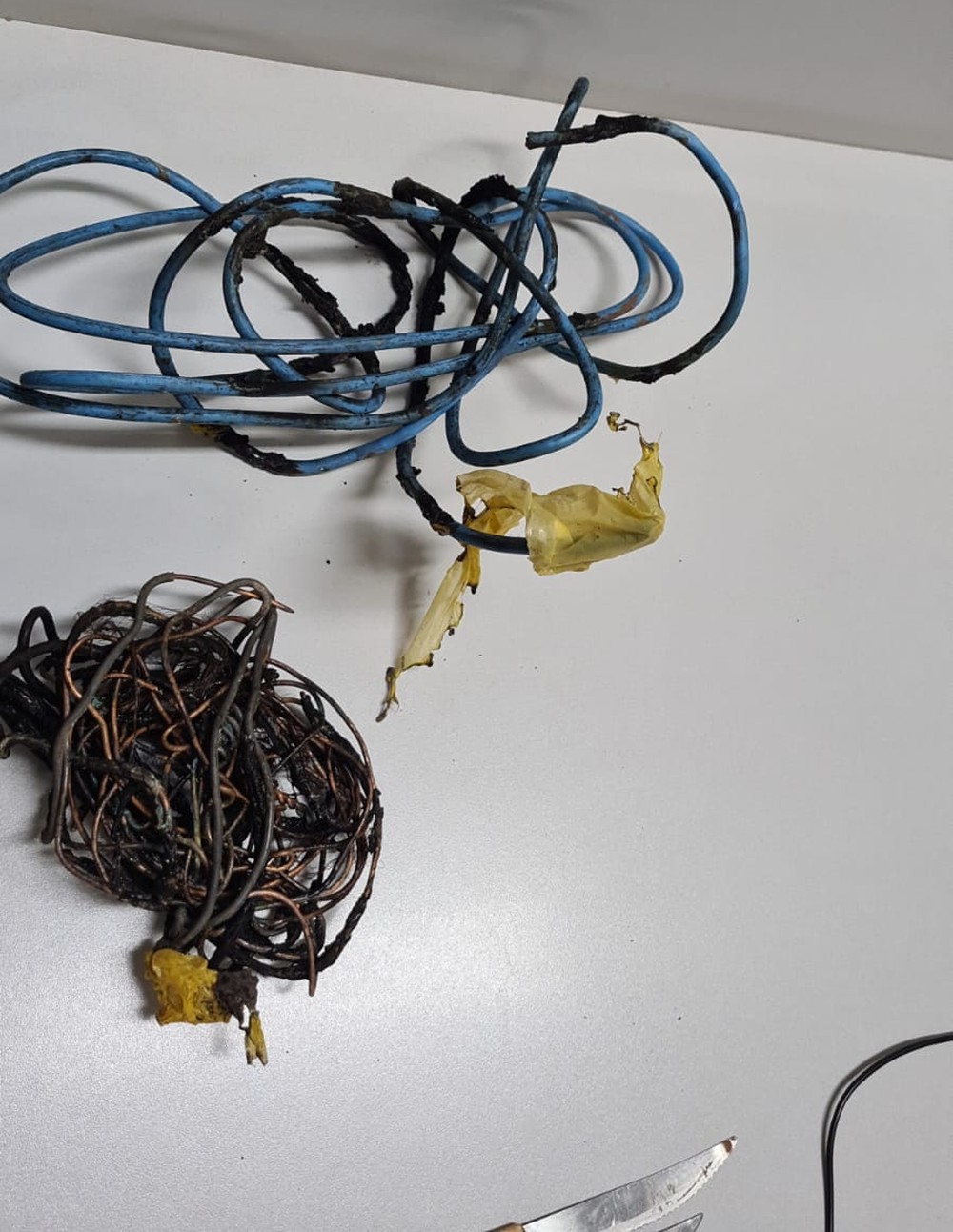 Foi constatado que o relógio de energia elétrica estava danificado e que a fiação havia sido furtada. Os policiais ainda constataram que a fiação do poste também estava danificada.