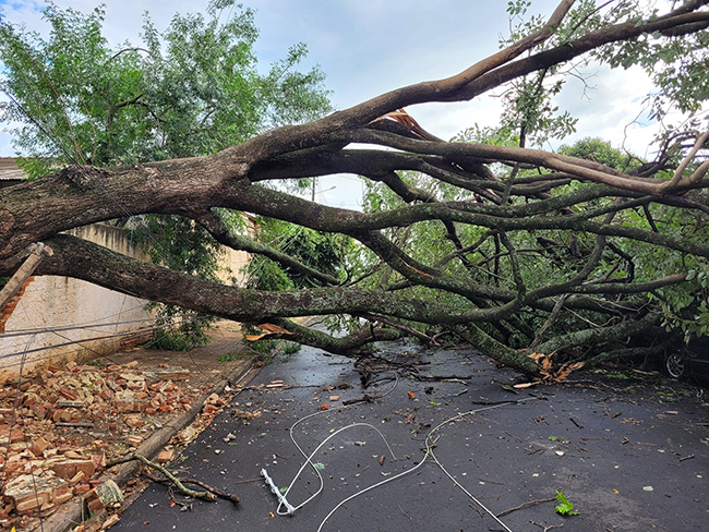 Vídeos foram postados em redes sociais, onde pessoas mostram árvores caídas sobre muros, fiação de energia e telefonia destruídos e até pelo menos um veículo acabou atingido por queda de árvore.