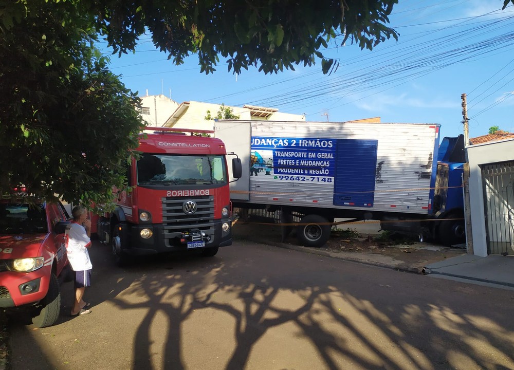 Um caminhão desgovernado invadiu na manhã deste sábado (26) uma residência no bairro Jardim Itapura 2, em Presidente Prudente (SP).