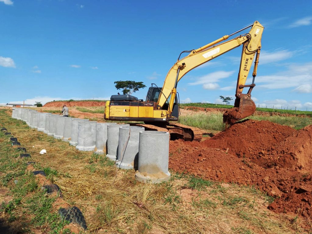 Na semana passada começaram a chegar os tubos que serão utilizados para a implantação de galeria para escoamento das águas pluviais, sendo que após serão construídas guias e sarjetas e em seguida a pavimentação asfáltica. Já na quinta-feira, dia 24, a empresa contratada pela Prefeitura iniciou a colocação dos tubos de con creto para a implantação da galeria de capitação de águas pluviais.