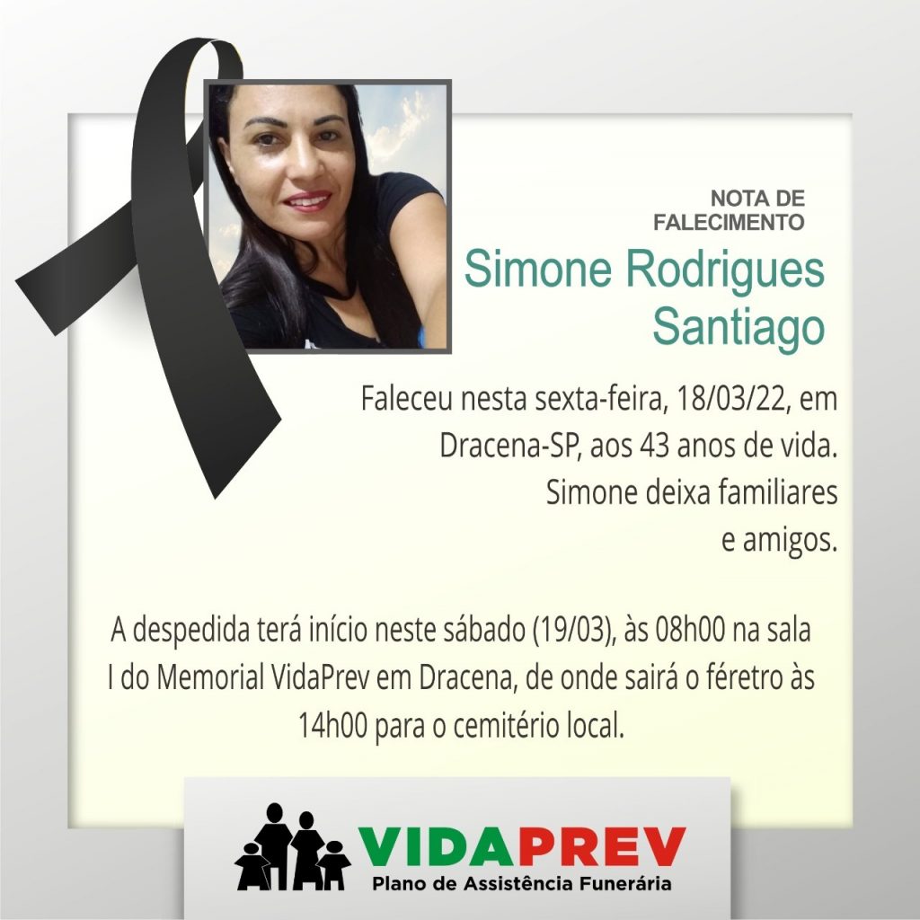 O sepultamento de Simone Rodrigues Santiago, 43 anos, está marcado para ser realizado as 14h.