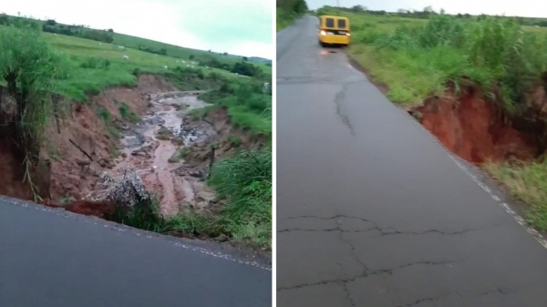 A passagem pelo trecho exige velocidade reduzida e cuidados redobrados, até que ocorra reparo provisório ou definitivo no ponto danificado pelas chuvas.