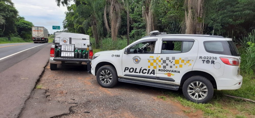 A Polícia Militar Rodoviária apreendeu 280 garrafas de bebidas alcoólicas, perfumes, e 20 galões de azeite que estavam em uma caminhonete. O veículo, com placas de Taboão da Serra (SP), foi parado na Rodovia Assis Chateaubriand (SP-425), km 375, em Parapuã (SP), neste domingo (27). Dois homens foram detidos.