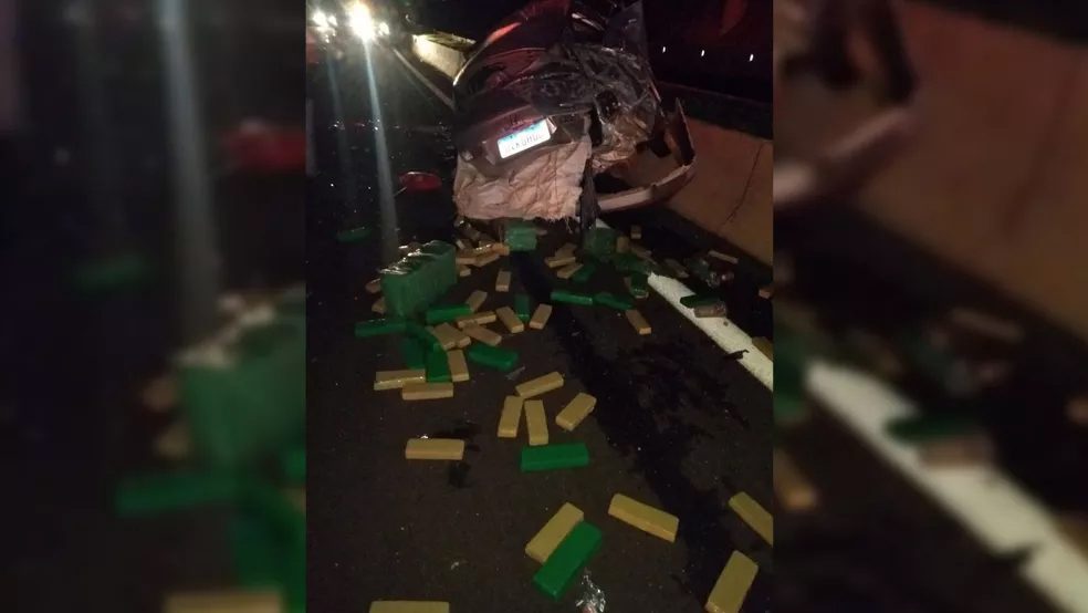 Dentro do veículo foi encontrada grande quantidade de maconha que pesou 249,08 quilos. Além da droga, foram apreendidos dois celulares, 8 folhas de cheque, um pen drive e R$ 228 em dinheiro. A passageira do carro chegou a ser socorrida, mas foi constatada a morte dela no hospital.