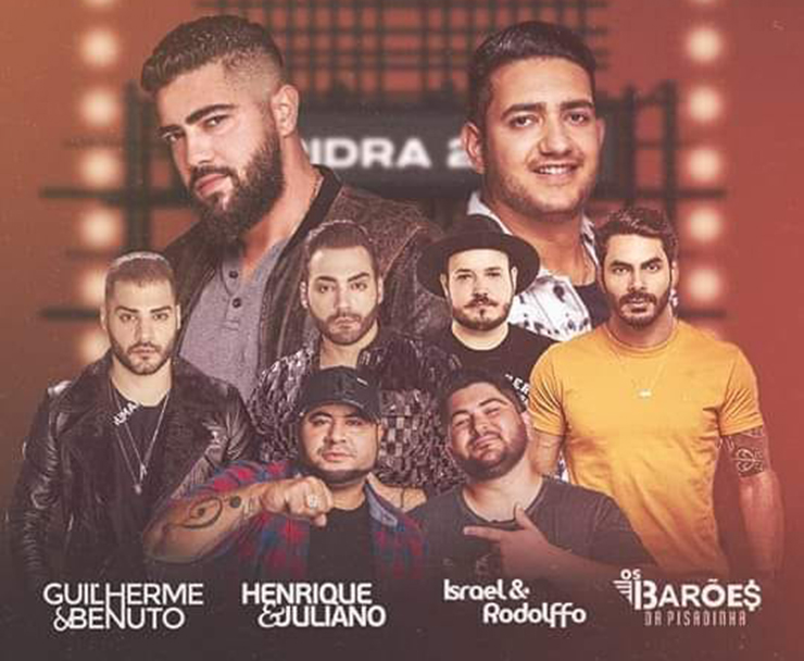 Estão confirmados os shows com Guilherme & Benuto; Henrique & Juliano; Israel e Rodolfo; e Os Barões da Pisadinha.