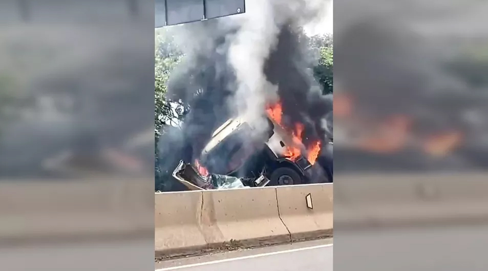 Um caminhão ficou destruído após pegar fogo na Rodovia Raposo Tavares (SP-270) no começo da tarde desta sexta-feira (8), em Ourinhos (SP).