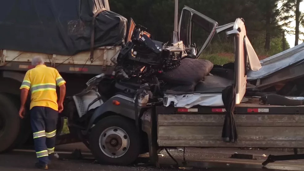 Morre motorista resgatado das ferragens após colisão traseira entre caminhões em rodovia de Bauru
