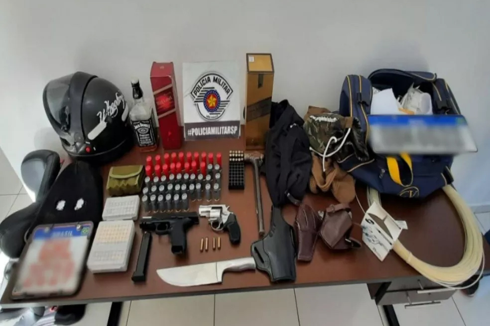 Dois homens foram presos após furtarem duas armas, munições, bebidas e uma caminhonete em Tupã, no interior de São Paulo.