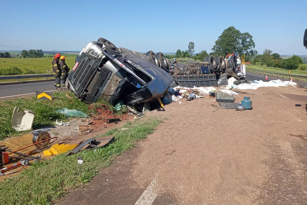 Caminhoneiro morre após tombar carreta em rodovia de Santa Cruz do Rio Pardo