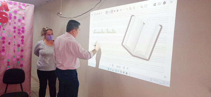 A Secretaria de Educação recebeu a instalação de uma lousa no auditório da sede, a fim de fazer testes e os primeiros treinamentos.
