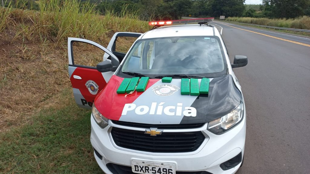 Abordado um veículo que faz corridas por aplicativo, a passageira que estava no banco de trás com uma mochila, carregava consigo a droga dividida em tijolos.