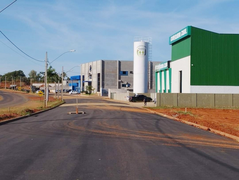 A pavimentação daquele distrito segue as determinações do prefeito Osmar Pinatto, no cumprindo das metas estabelecidas pelo PDM-Plano de Desenvolvimento Municipal, para atender a demanda das empresas já edificadas e as que estão edificando seus empreendimentos.