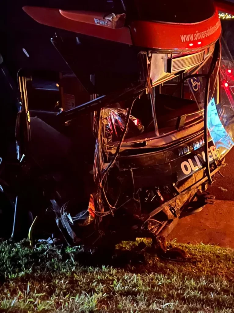 A colisão foi registrada no quilômetro 419, no sentido capital-interior. De acordo com a Polícia Rodoviária, informações preliminares apontam que o ônibus bateu na traseira do caminhão que transportava uma carga de trigo.