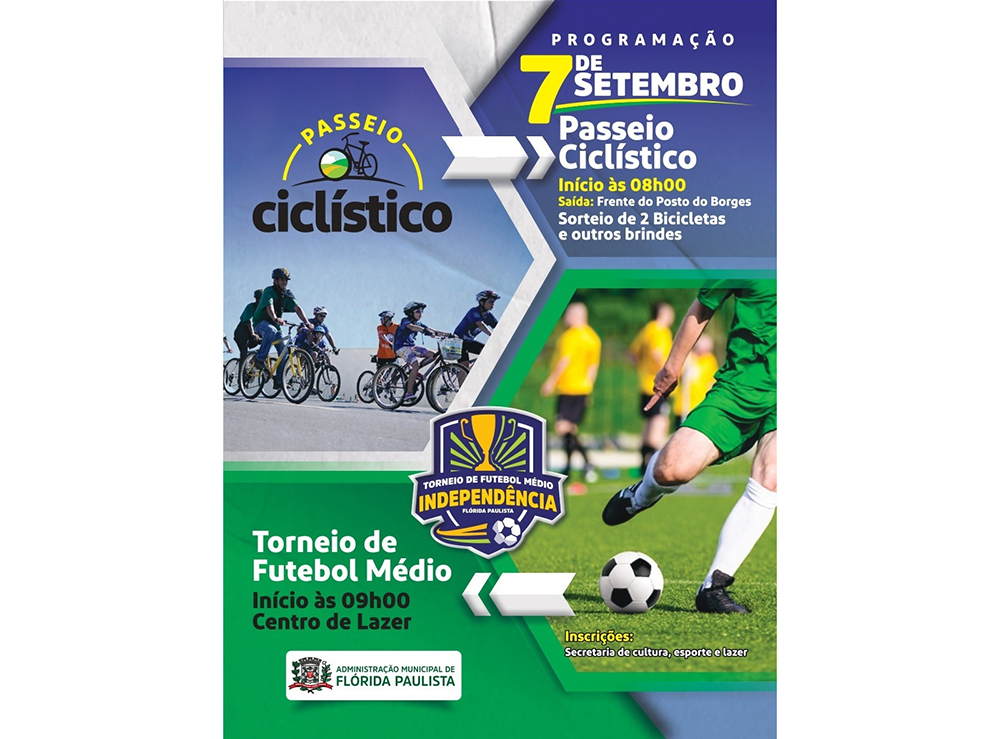 A Prefeitura de Flórida Paulista, por meio da Secretaria de Cultura, Esporte e Lazer divulgou uma programação especial que será realizada no feriado de 7 de setembro.