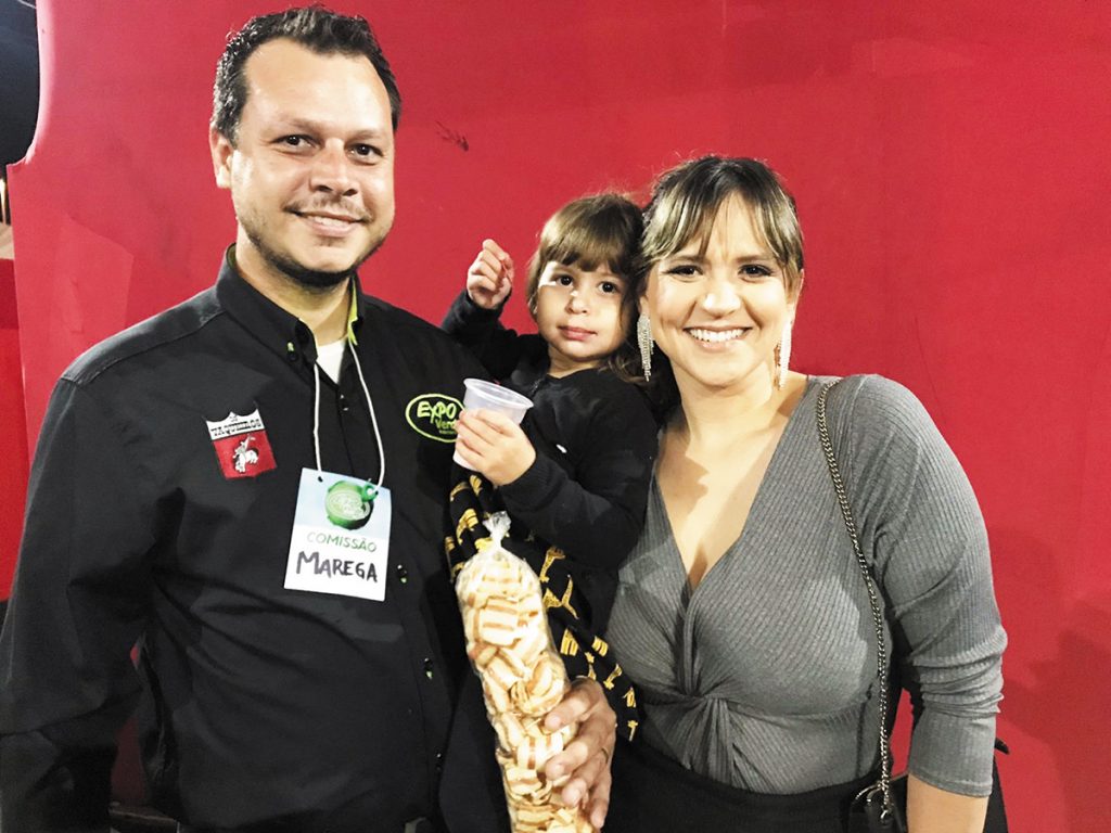 O Capitão PM Bressan (Adamantina), com a esposa Juliana e filha Giovana na ExpoVerde 2022