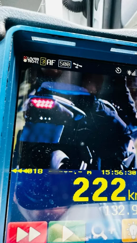 O flagrante aconteceu durante uma fiscalização de controle de velocidade nas proximidades do Posto Ecológico, onde o limite é de 80 km/h.