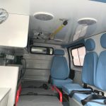 A ambulância da marca Peogeot Expert equipada para remoção e transporte de pacientes, tendo grande espaço e segurança.