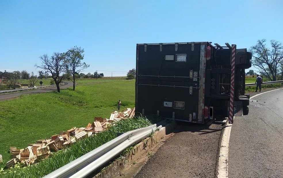 De acordo com a Polícia Rodoviária, o motorista perdeu o controle do veículo e tombou próximo a alça de acesso, no quilômetro 447, sentido capital-interior.