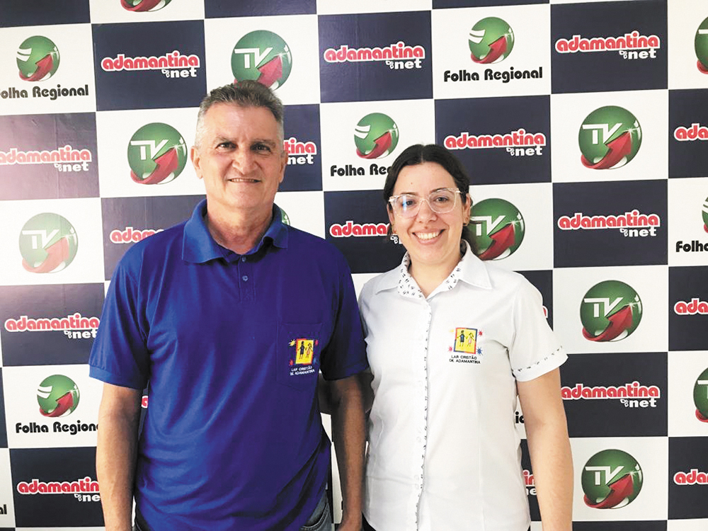 O presidente do Lar Cristão de Adamantina, Sebastião Luiz Torturelo com a diretora Bibiana Chaves em recente entrevista na TV Folha Regional