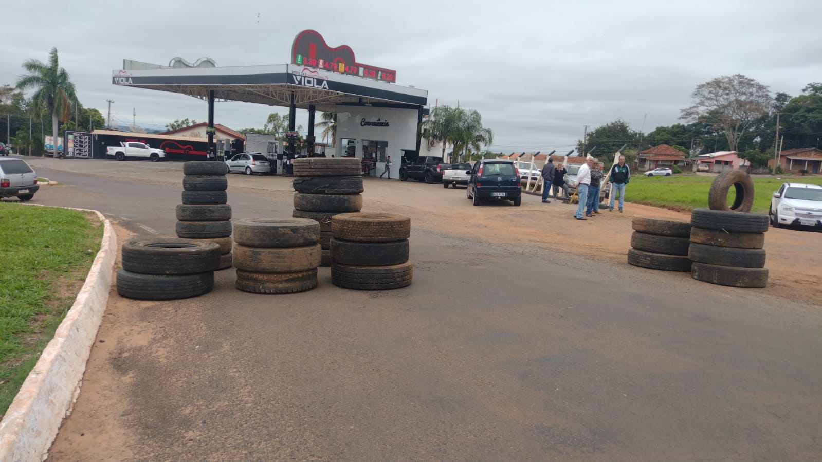 Um bloqueio com pneus foi colocado no “trevo da viola”, entrada da cidade e principal ligação entre as rodovias Comandante João Ribeiro de Barros – (SP-294) e Júlio Budiski (SP-501), importante via de ligação da Nova Alta Paulista com a Sorocabana.