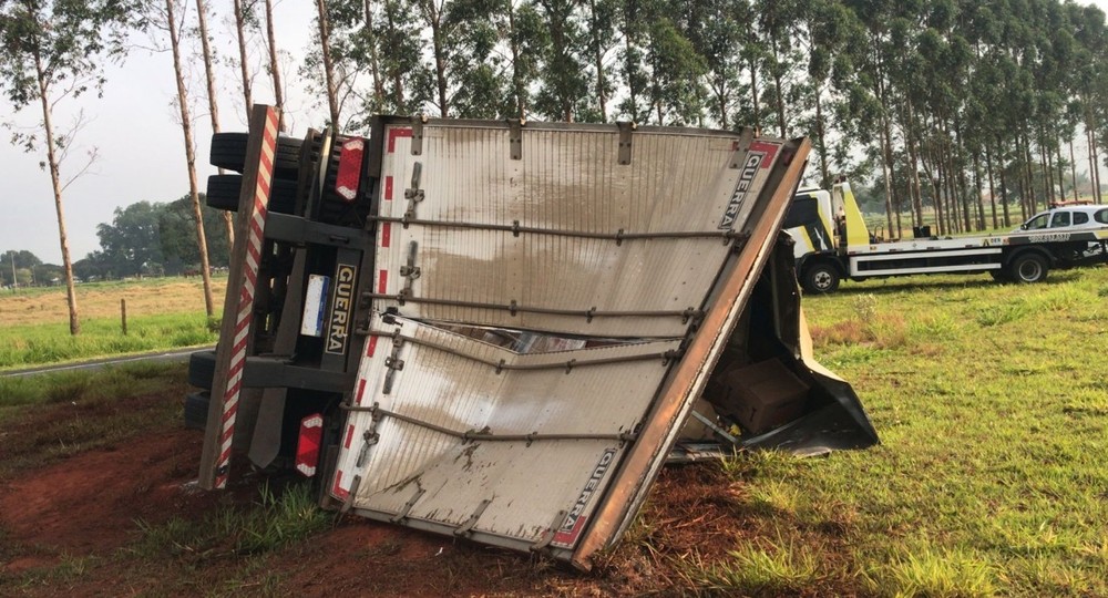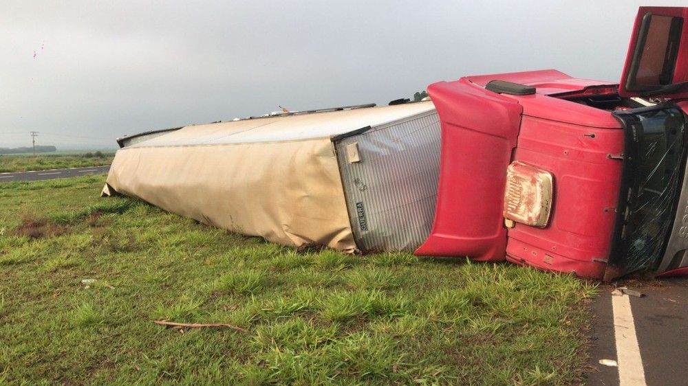 Uma carreta perdeu o controle da direção e tombou na Rodovia Assis Chateaubriand (SP-425), na madrugada deste sábado (12), em Tarabai (SP).
