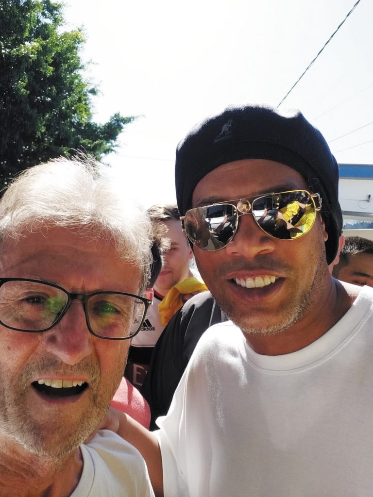 O floridense Milton Cabrera com o craque Ronaldinho Gaúcho em destaque na coluna social