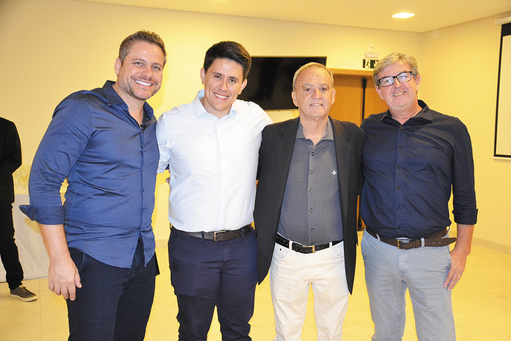Marco Filho (Oeste Seguros) com os vereadores adamantinenses Alcio Ikeda, Paulo Cervelheira e Aguinaldo Galvão